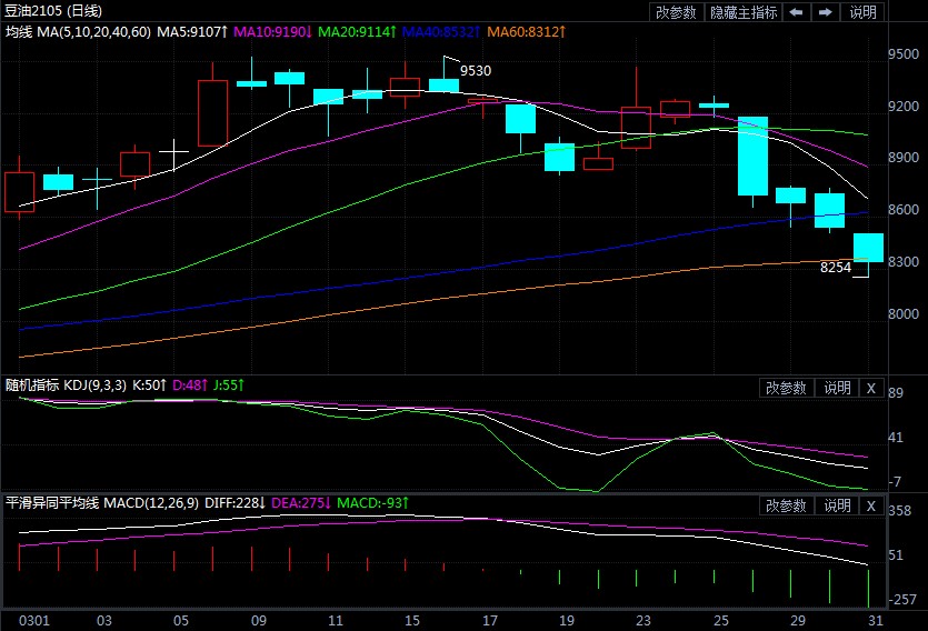 2021年04月06日丨大豆丨分类: 大豆供求丨标签: 大豆油价格行情受隔夜外盘跌势及市场悲不雅情感打压,本周三(3月31日)我国豆油期货从力合约大跌3.45%,近五个交难日持续收阳线附近收持位;目标上跌破布林带下轨,并沿下轨运转;量能暖和。持仓量削减超1.6万手,市场空气全体偏空。此外,国内棕榈油期货从力合约跌逾2%,菜油相匹敌跌,收盘跌幅不脚1%。