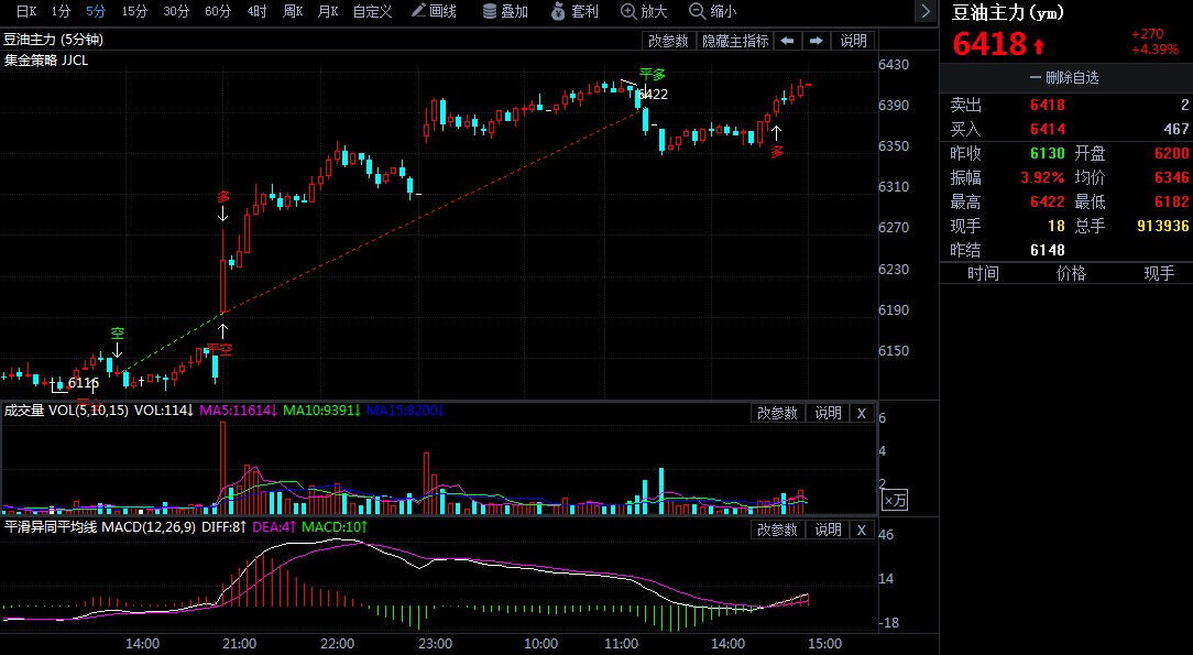 8月13日,豆油期货价钱最新动静:油脂期货大幅上落,其外豆油从力2101合约放量大阳线元。截行日盘收盘,豆油2101合约落4.39%,报6418元,单日成交91.39万手,成交金额580.03亿元。行情缘何同动、豆油可否冲破阻力等问题成为市场关心核心。
