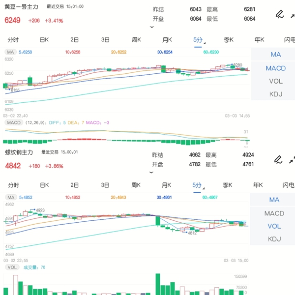 3月3日期市收评:商品期货多数上涨 豆一主力再创历史新高大豆历史价格走势图